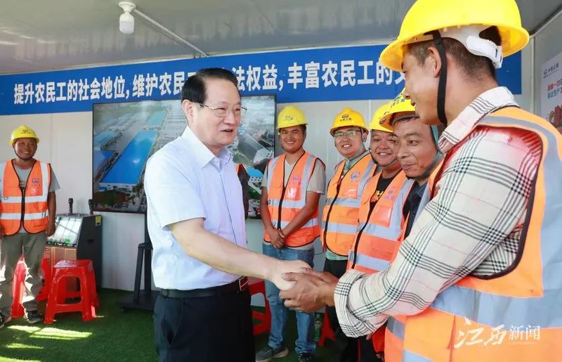 赤日炎炎,南昌洪騰高架項(xiàng)目現(xiàn)場(chǎng)一派繁忙,工程車來(lái)回進(jìn)行路面瀝青攤鋪,工人們正在揮汗如雨作業(yè)。易煉紅來(lái)到工地現(xiàn)場(chǎng),向一線建設(shè)者們致以問(wèn)候,感謝他們?yōu)槟喜鞘薪ㄔO(shè)作出的貢獻(xiàn)。他說(shuō),南昌是英雄城。大家來(lái)自全國(guó)各地,頂著烈日、不懼“烤”驗(yàn),揮灑的每一滴汗水、付出的每一份辛勤都是在為英雄城南昌的建設(shè)發(fā)展添油助力,你們是光榮的勞動(dòng)者,也是在高溫下戰(zhàn)斗的“英雄”。易煉紅反復(fù)叮囑大家要保重身體,采取有效措施防暑降溫,注意自我防護(hù)、勞逸結(jié)合,以健康的身體投入緊張的工作。在現(xiàn)場(chǎng),易煉紅還聽(tīng)取了項(xiàng)目有關(guān)情況介紹,要求在確保質(zhì)量和安全的前提下,加快推進(jìn)項(xiàng)目建設(shè),確保早日建成通車。